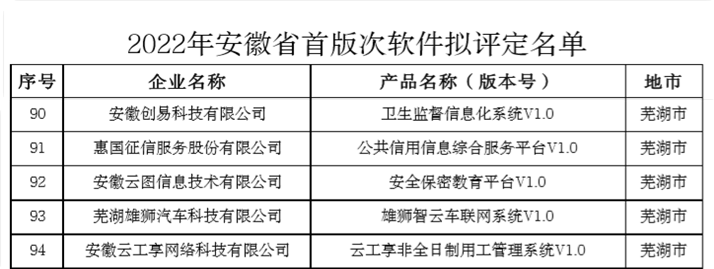 2022年2月25日,安徽省经济和信息化厅公布了2022年安徽省首版次软件项目名单,经过公示,我公司自主研发产品入选。?首版次软件产品是指企业通过自主开发,其功能或性能有重大突破,在该领域具有技术领先优势或者打破市场垄断,拥有自主知识产权的同产品名称、同一版本号的软件产品。? ?? 安全保密教育平台V1.0为我公司自主研发的产品,可运行于Windows、Linux、Centos系统平台上,使用C#语言开发,应用于保密培训、考试领域,具有课程管理、知识点管理、学习课件管理、题型管理、试卷设置、考试管理、考试记录、员工管理、数据统计等功能点。目前面向市场投入使用。