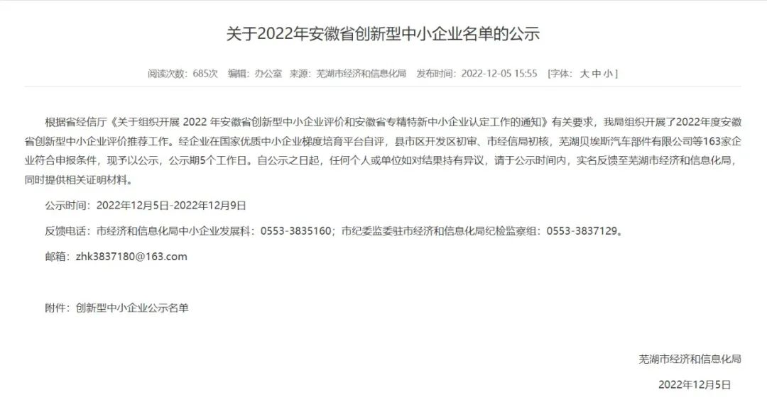 12月5日,芜湖市经信局公布了2022年安徽省创新型中小企业名单。安徽多多28成功通过审核,被认定为安徽省创新型中小企业!