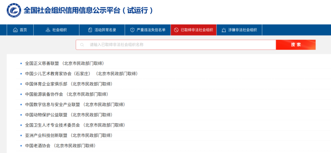 已取缔非法社会组织、涉嫌非法社会组织名单入口如下