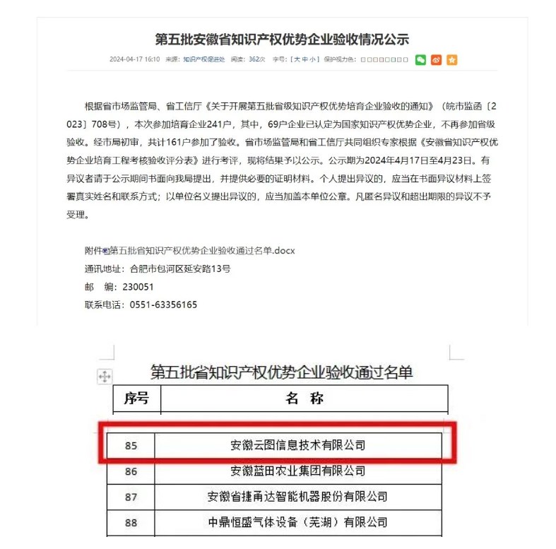 ? ? ? 近日,安徽省市场监督管理局公布了第五批安徽省知识产权优势培育企业验收情况公示。安徽多多28信息技术有限公司成功通过验收,获评第五批“安徽省知识产权优势企业”。
