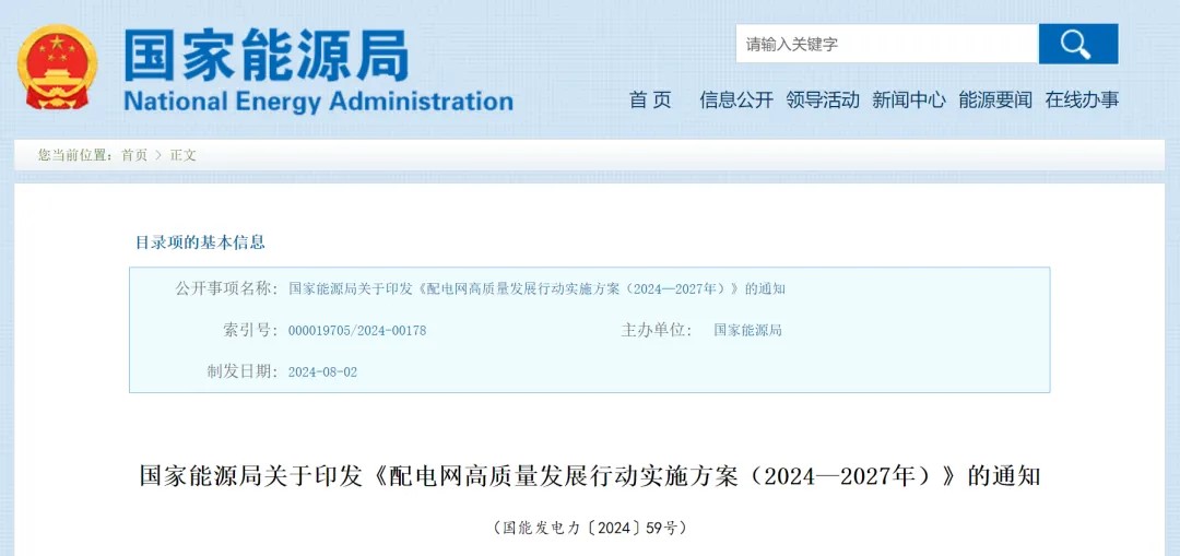 为实施上述“四个一批”项目建设,各省要组织编制《配电网发展实施方案》,并于202410月底前报送国家能源局,每年年初报送上年度实施进展情况。