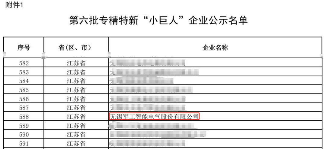 江苏省工信厅近日公布了第六批专精特新“小巨人”企业名单,无锡军工智能电气股份有限公司获评“国家专精特新小巨人”。这一殊荣不仅是对无锡军工智能过去成绩的肯定,更是对公司未来发展的认可。
