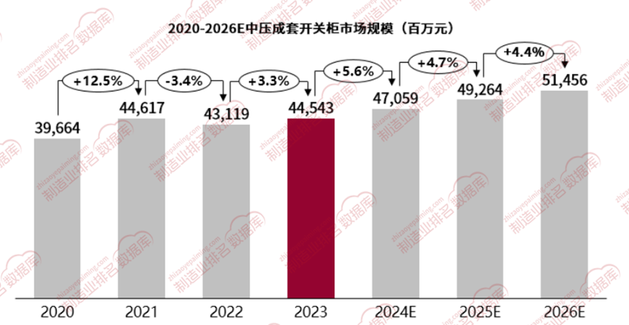 中压成套开关柜市场概览 | 2023年国内中压开关柜市场规模为445.4亿元,同比增长3.3%