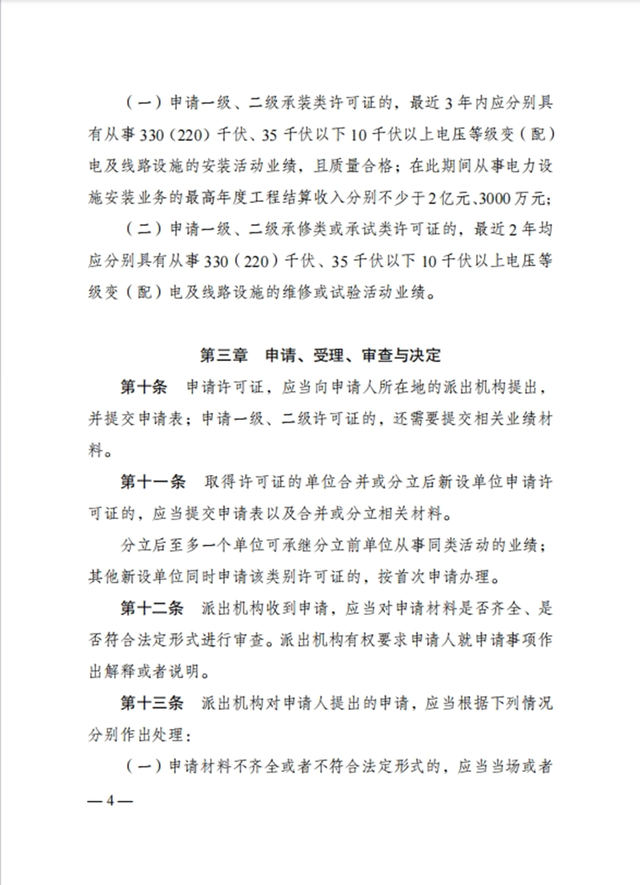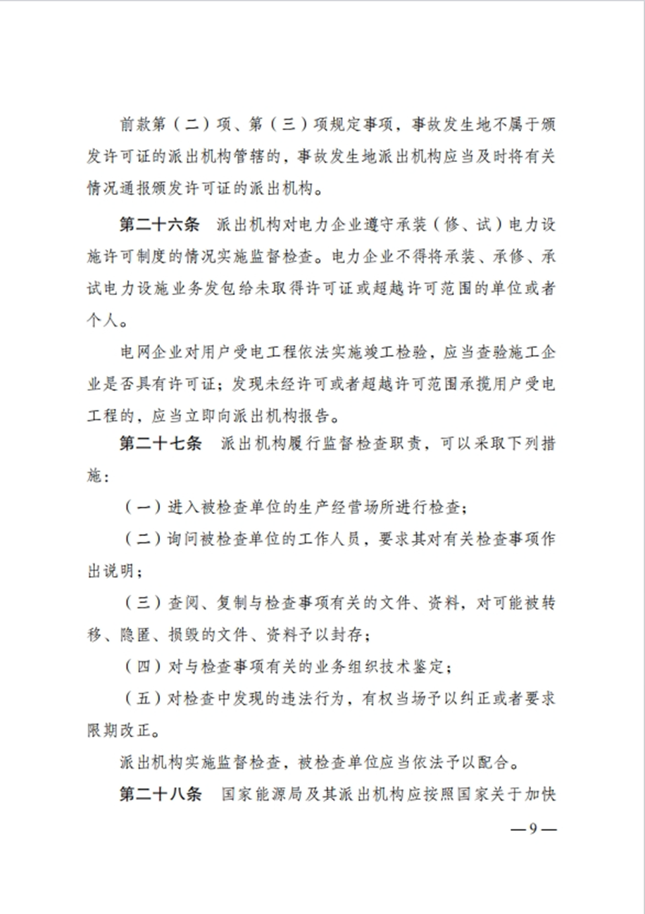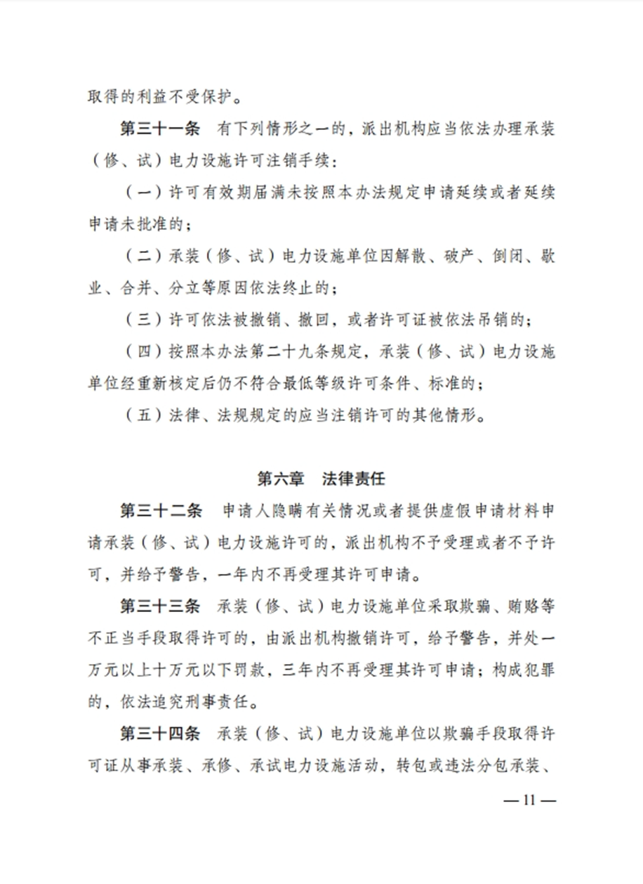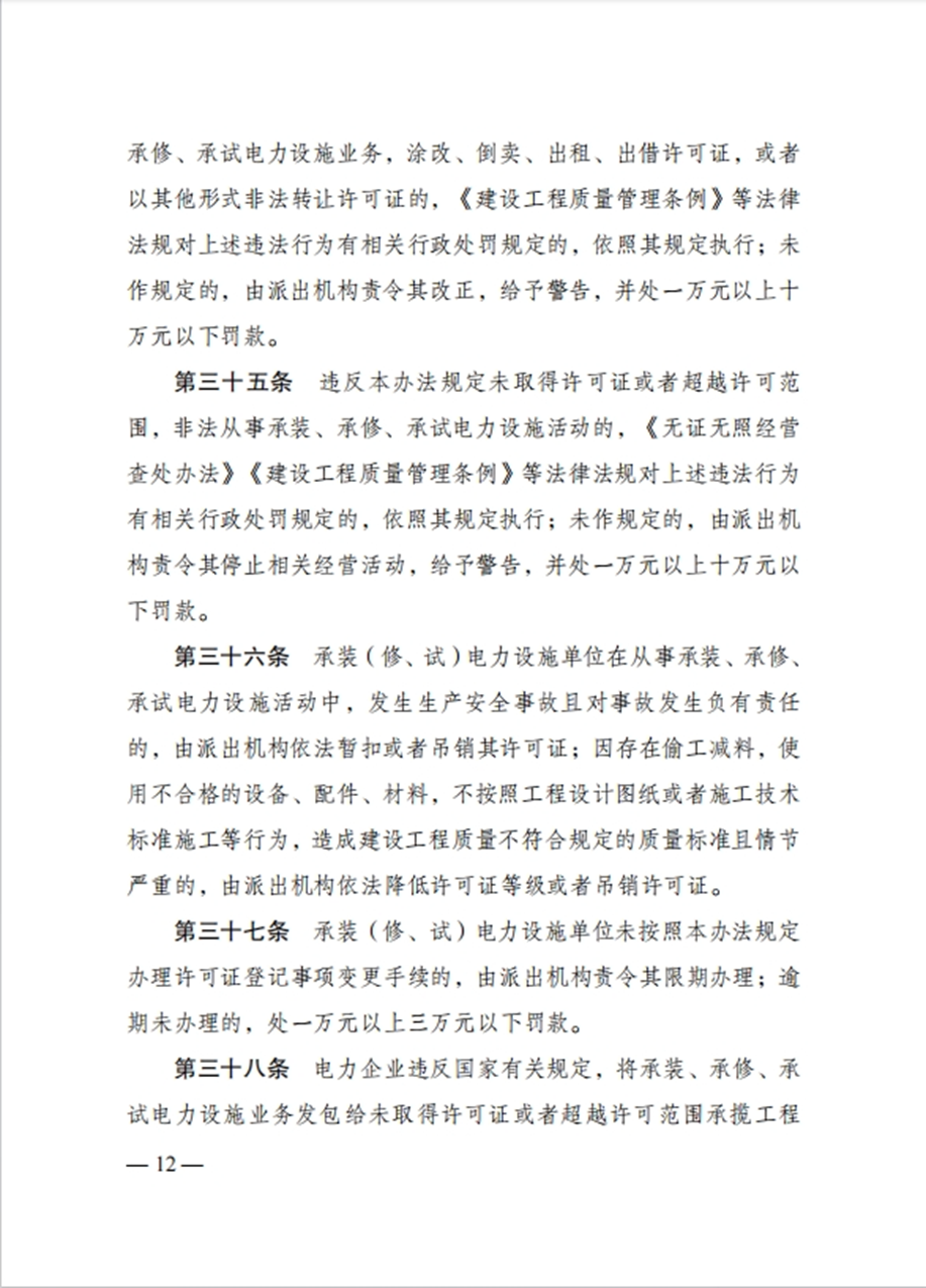 国家发改委令:任何单位未取得许可证,不得从事承装、承修、承试电力设施活动!