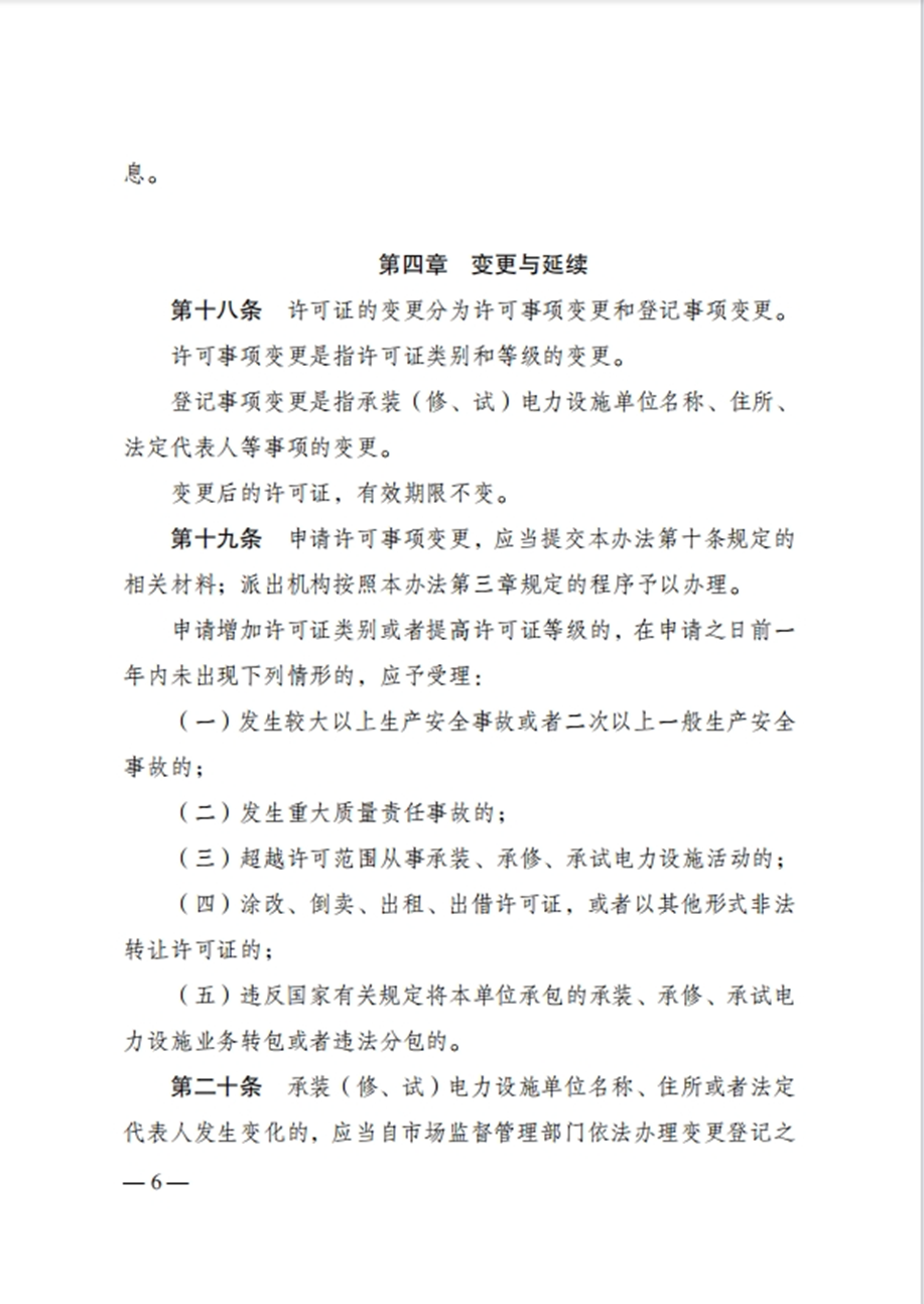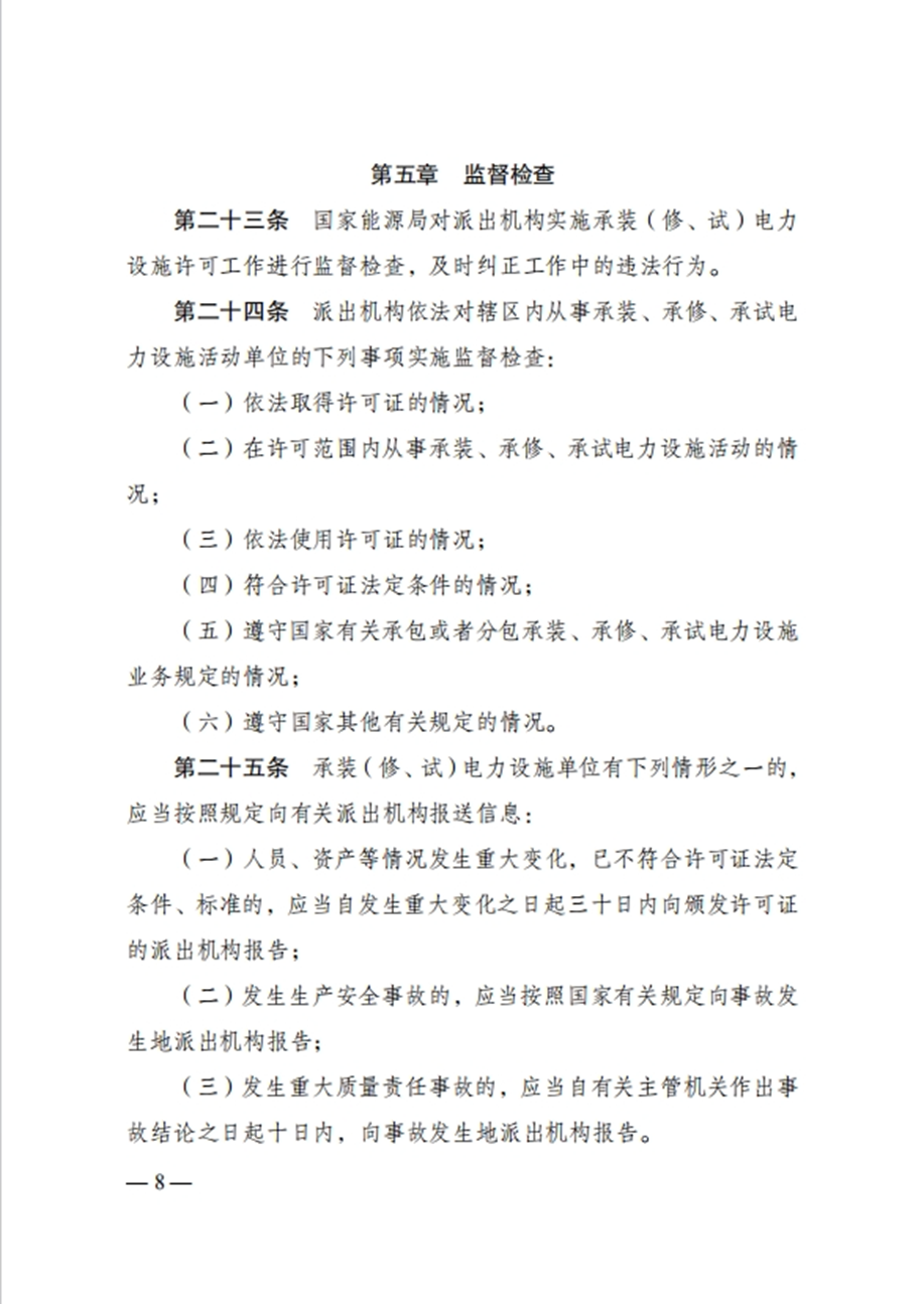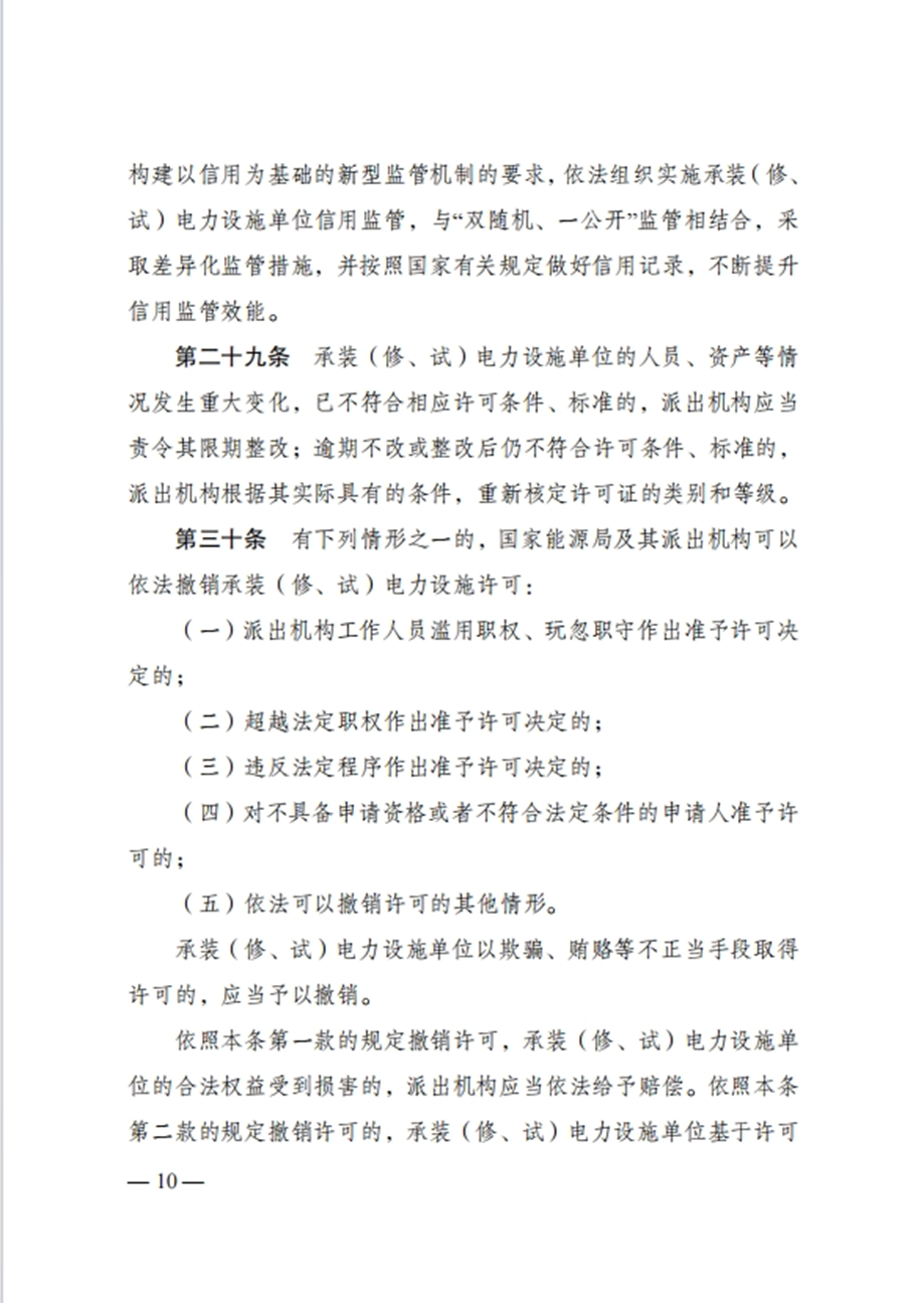 国家发改委令:任何单位未取得许可证,不得从事承装、承修、承试电力设施活动!