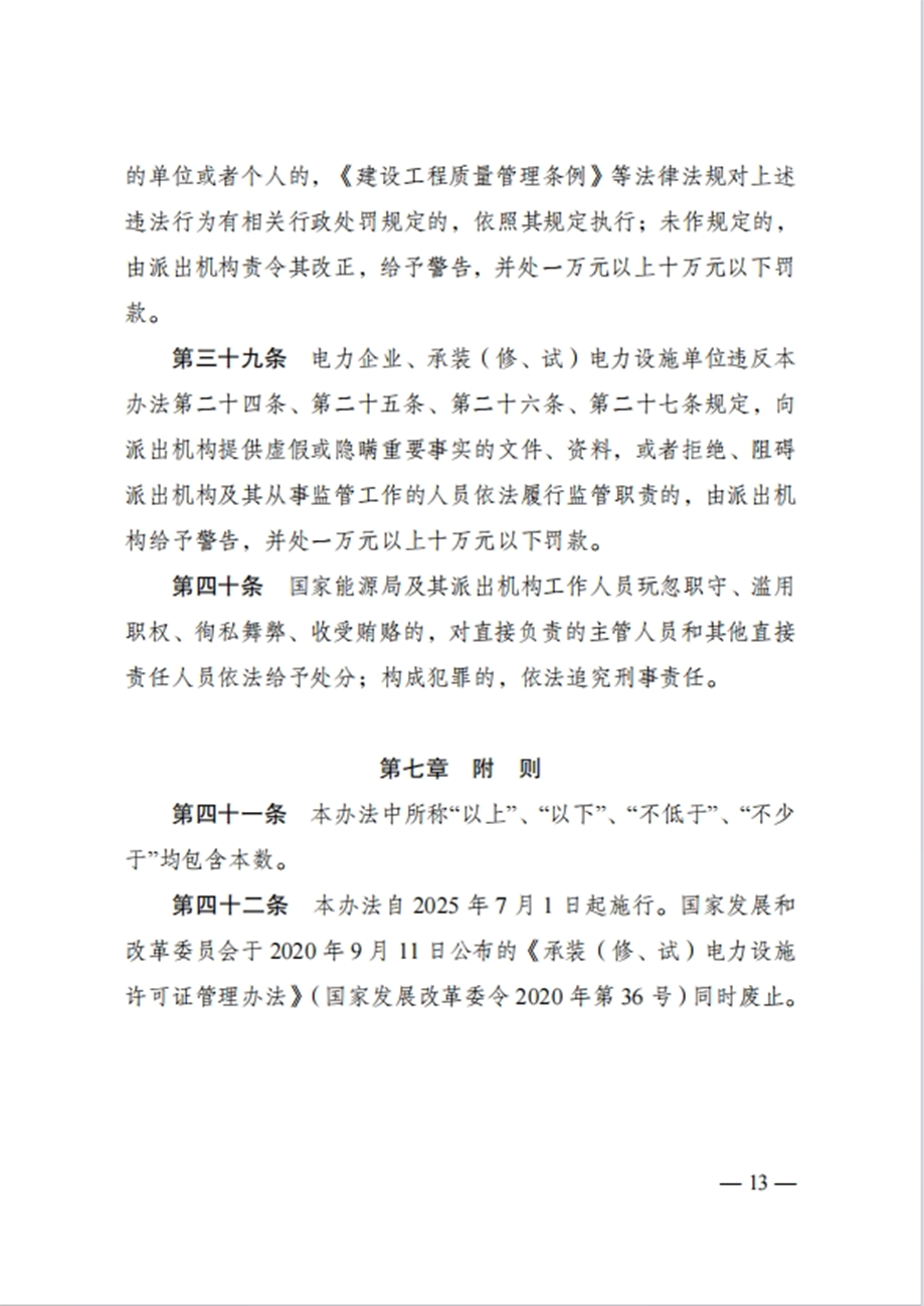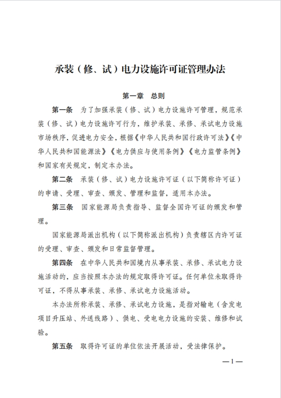 近日,国家发展改革委颁布了新修订的《承装(修、试)电力设施许可证管理办法》(国家发展改革委2025年第30号令,以下简称《办法》),自2025年7月1日起施行,原《承装(修、试)电力设施许可证管理办法》(国家发展改革委2020年第36号令)同时废止。
